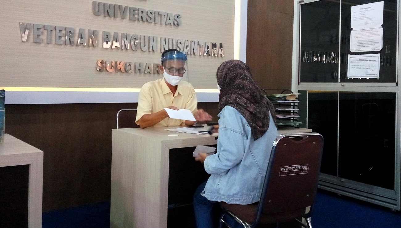Penyaluran bantuan UKT/SPP dari Kemendikbud kepada mahasiswa UVBN Sukoharjo yang terdampak pandemi Covid-19. (Foto Koestin Rifdah) |